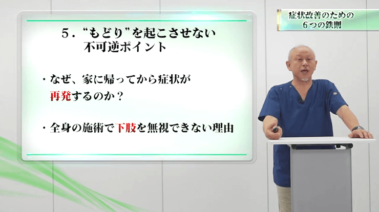 40年にわたる研究と、のべ50万人の臨床経験から生まれたこの治療法を使えば、車イス患者、杖患者…と、歩くことも難しいような重症の患者さんが歩けるようになることが、日常的にあなたの目の前で起こるようになります。お約束します。必ずあなたにもできます。