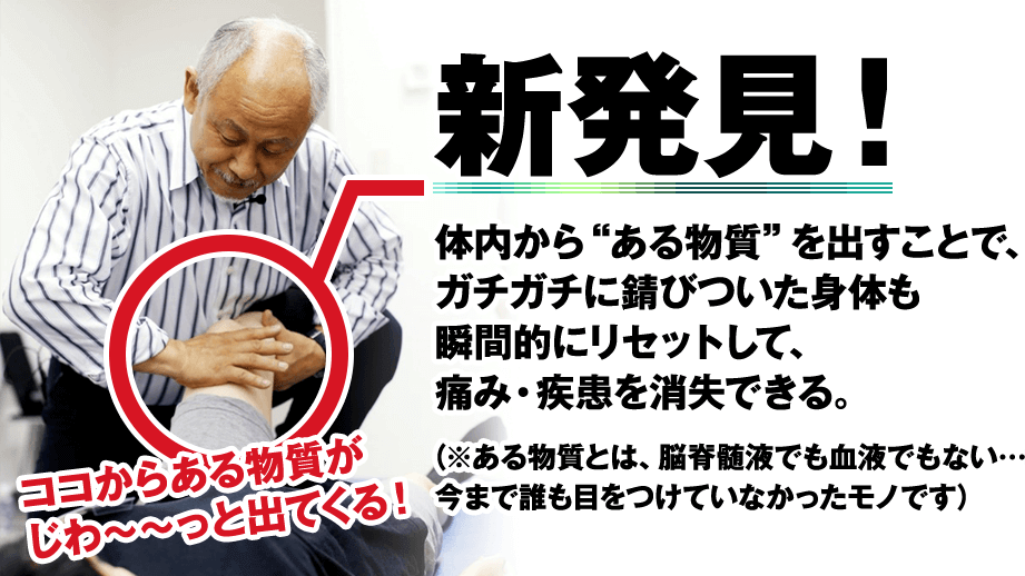 本日ご紹介するのは、医師から手術宣告を受けている、痛みが強すぎて、車イスや寝たきりの生活を強いられている、そんな最重度の痛みすら、「当たり前のように1回で治せる」治療法です。