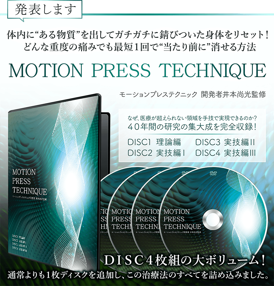 | どんな重度の痛みでも最短1回で“当たり前に”消せる方法 『MOTION PRESS TECHNIQUE』DVD(監修:井本尚光) |