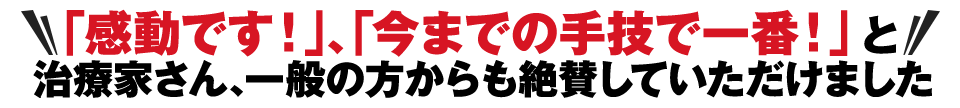 あまりに予想外の理論と治療効果に、これまでに数々の治療法を学んできたベテランの治療家さんですら「目からウロコ」「こんな方法があったとは…」と度肝を抜かれるような治療法です。