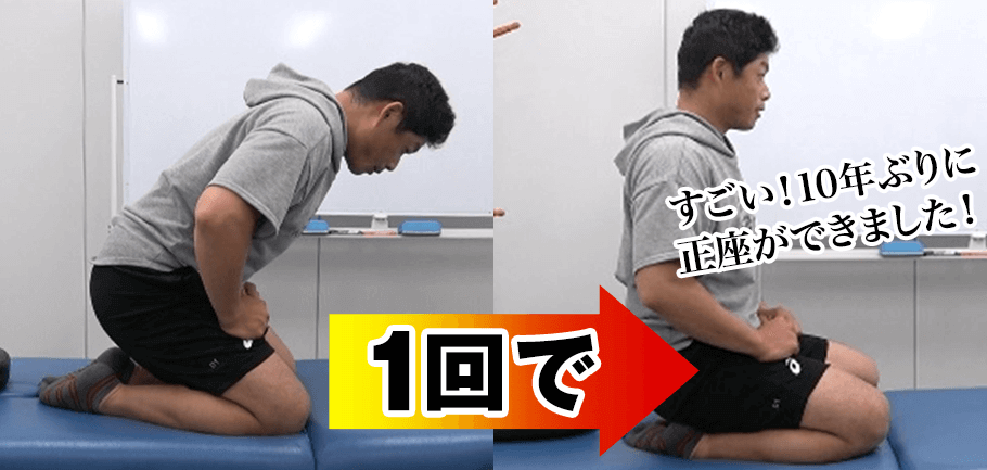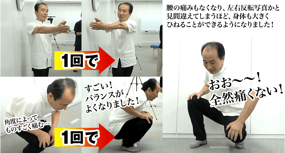 いつもの私の施術では、痛みを和らげてあげる程度しかできなかったのですが、この治療法を学んですぐに試してみると、なんと、1回施術しただけなのに、スクっとひとりで立ち上がれるようになったんです!